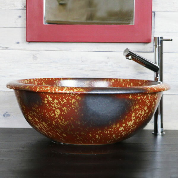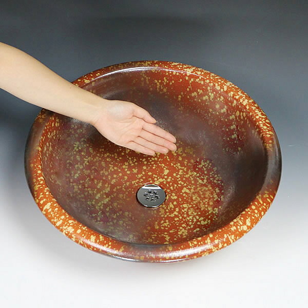 品 番 tr-4123 洗面ボウル 大型サイズ 品 名 信楽焼 火色三彩 手洗い鉢 大型 【送料無料】 据置き、埋込み兼用タイプの鉢です。